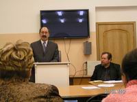 Композитор и музыковед Алексей Борисович Вульфов прочитал доклад на тему "Православное мировоззрение и православная культура в XXI веке". Справа от него - усердный организатор секции и ее председатель Георгий Георгиевич Поляченко.